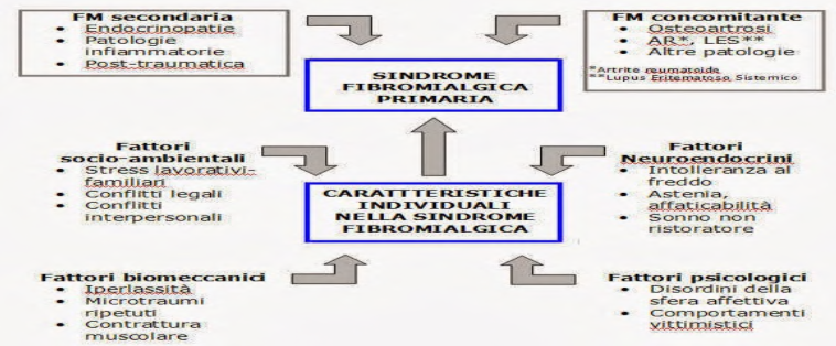 La FM si impianta su un terreno psicopatologico predisponente ansioso-depressivo abbinato a note disti miche, neuro labilità, disadattamento familiare ed un impegno in attività lavorative non motivanti o ripetitive, con un riconoscibile evento scatenante spesso riconducibile ad un significativo trauma psicofisico.